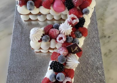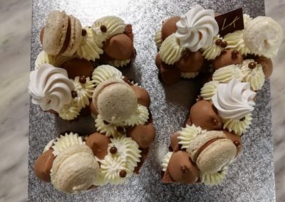 Cake vanille ou chocolat, fourré chocolat, crème au beurre chocolat et perles chocolat (4.00€/pce)